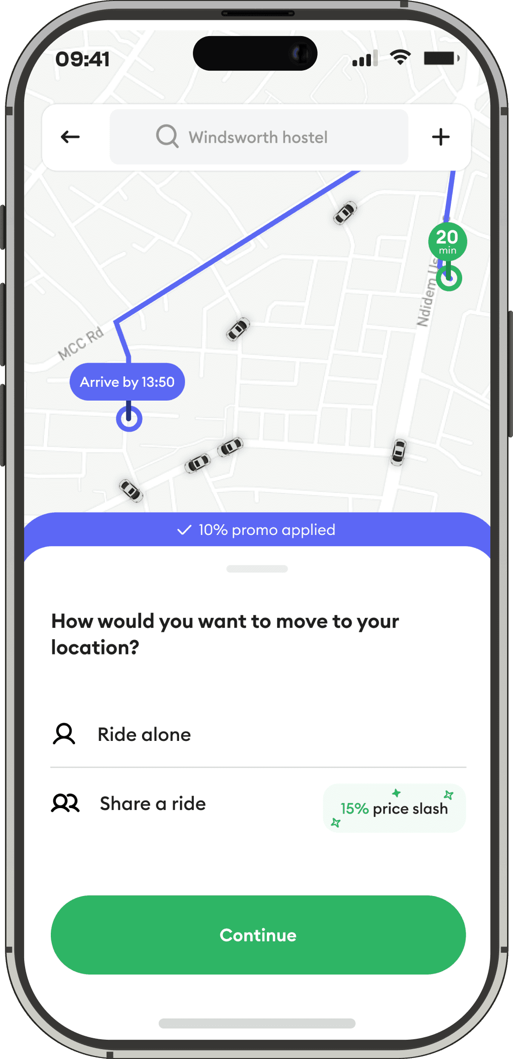 Users get introduced to the feature while attempting to book a ride, seamlessly encountering it as part of the same familiar process they normally follow.