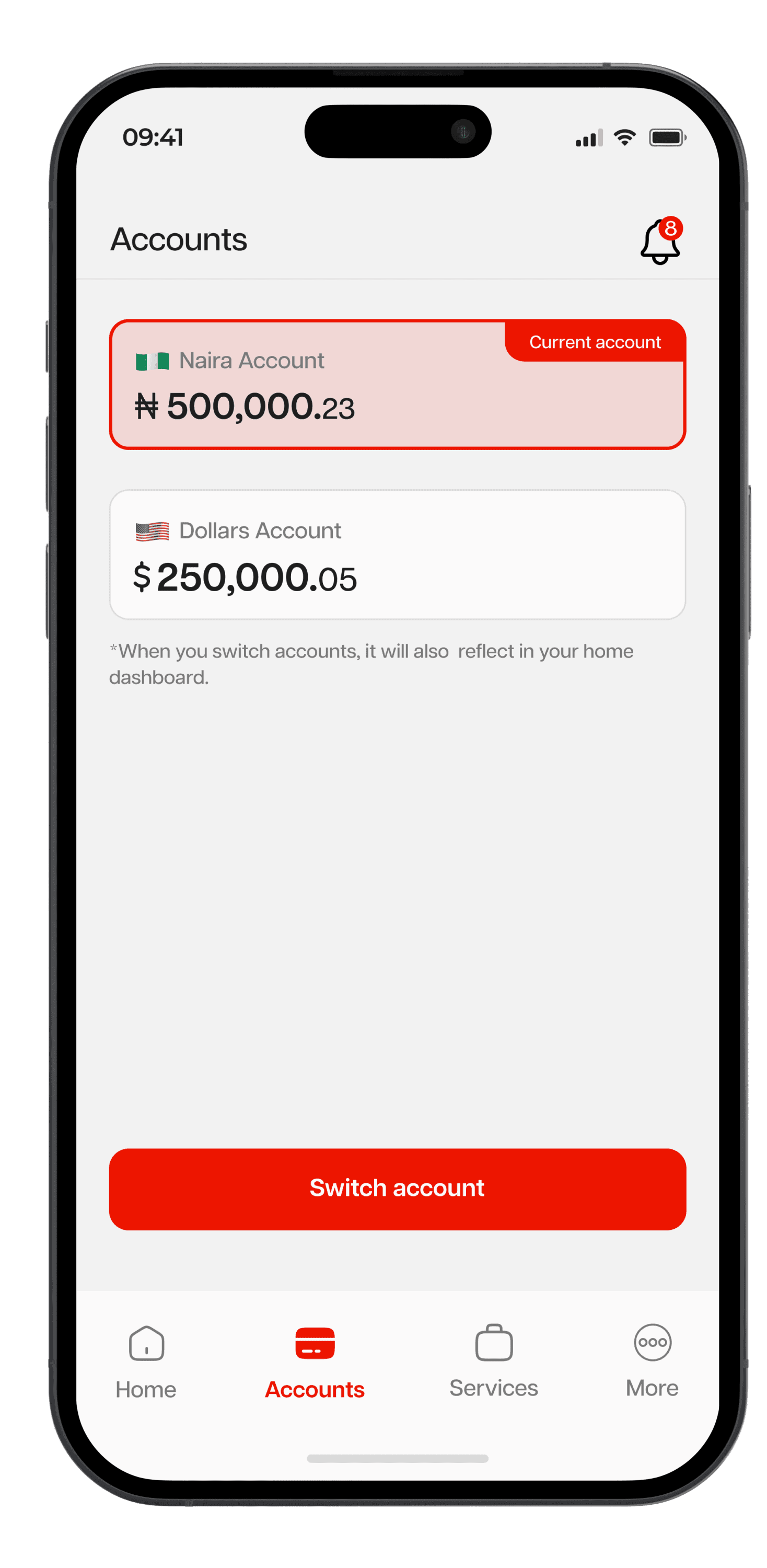 I designed a feature that allows users to access their dollar accounts just as easily as their Naira accounts. With a single click, they can switch between currencies, making international transactions feel simple, fast, and integrated within the app.