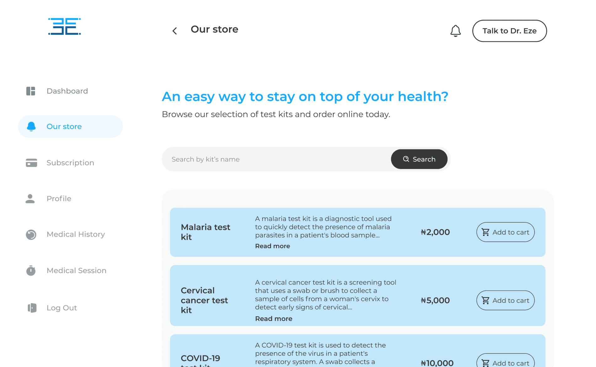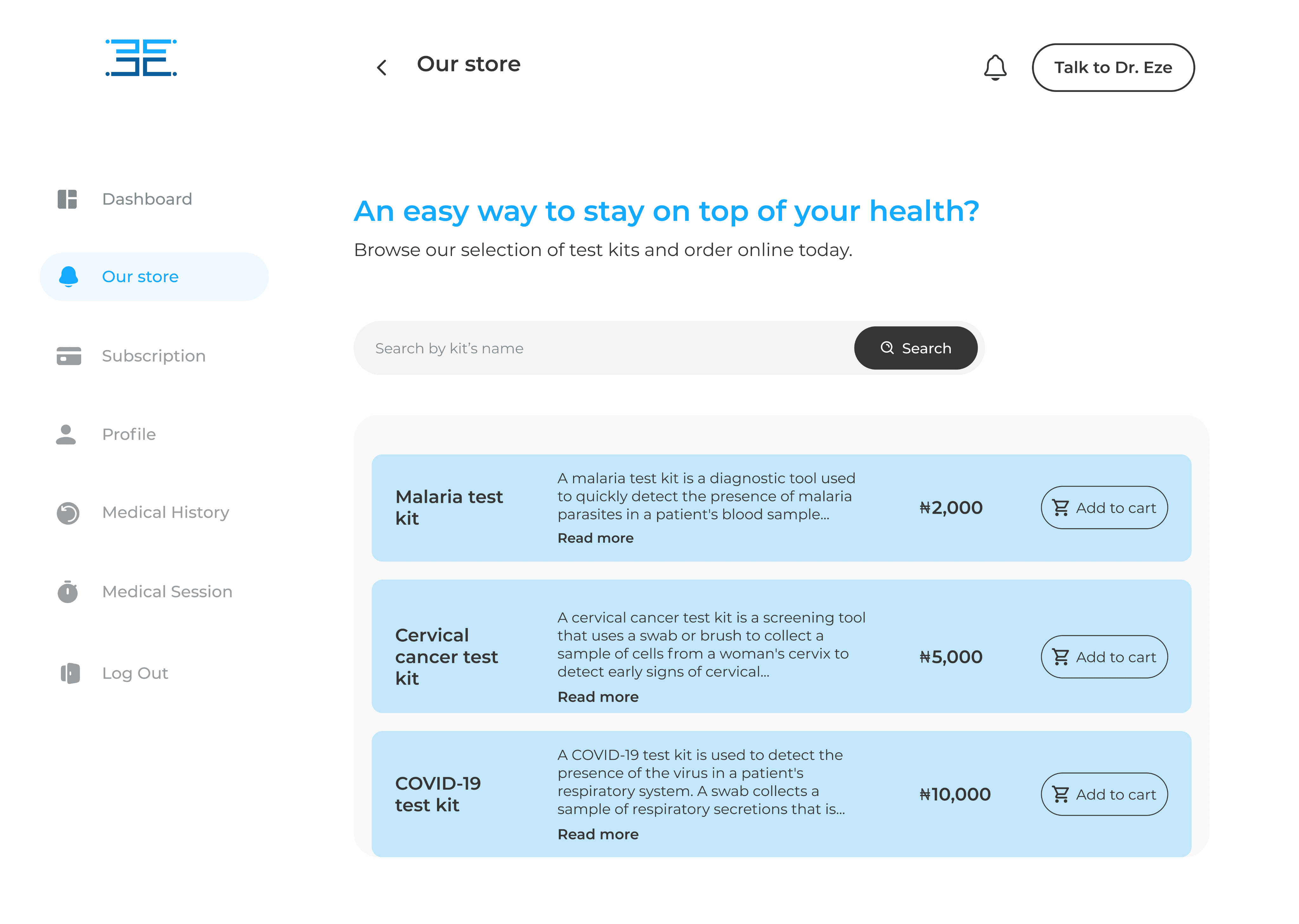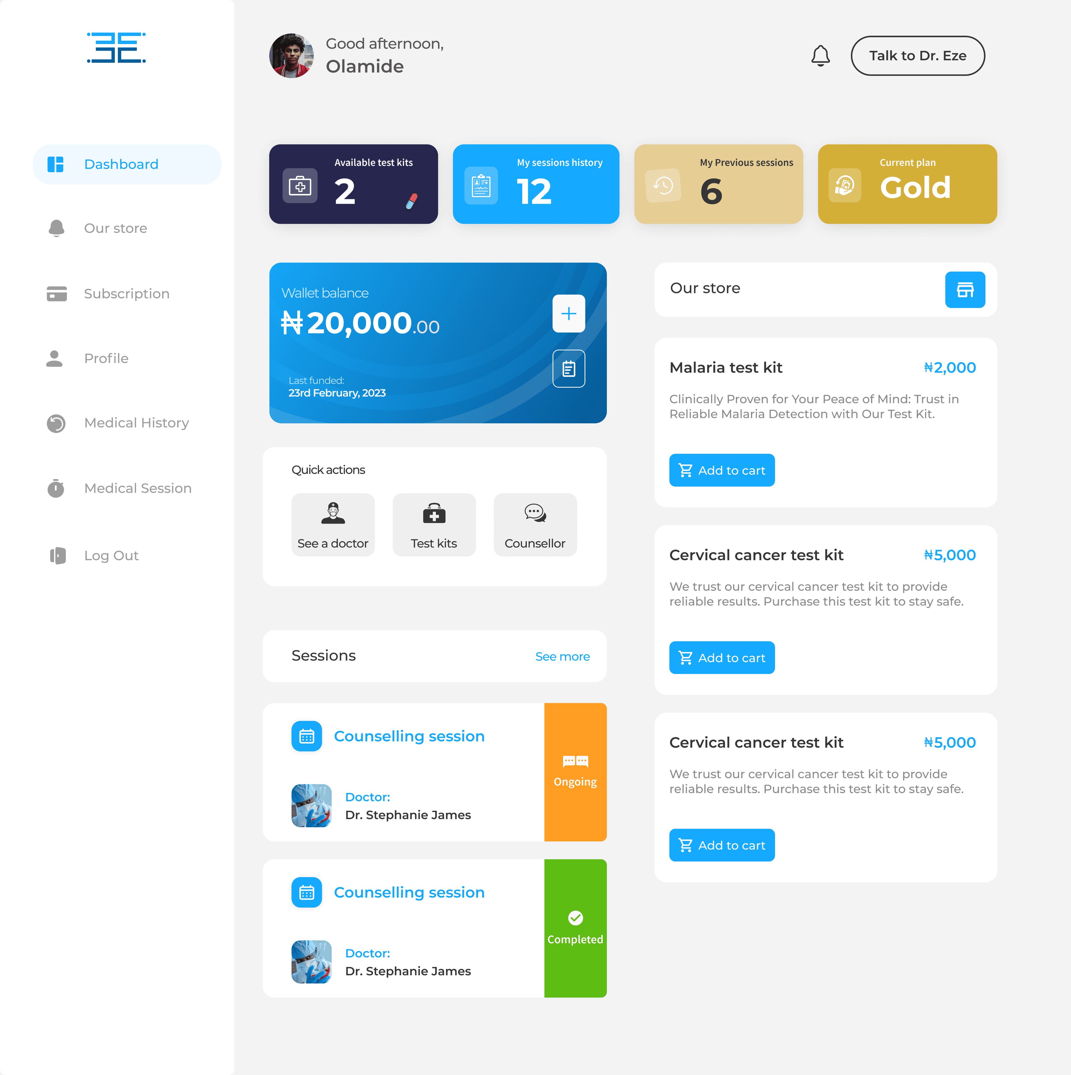 The wallet balance offers users the capability to store funds in their account, creating a financial reservoir for diverse uses. Users can employ these stored funds for a range of purposes, including making purchases from the online store. This integrated financial feature was aimed at helping regular Nigerians access medical assistance without having to physically show up at any hospital, and allowing for seamless purchase of drugs, all within the platform.